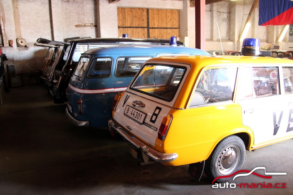 V nenápadné stodole najdete většinu vozů, které v socialistickém Československu jezdily, navíc se sbírka nepravidelně obměňuje. V době naší návštěvy jsme mohli obdivovat kompletní sbírku československých vozů. Celá jedna strana stodoly je lemována řadou škodovek. Kromě raritního a vzácného modrého vozu Škoda 1000 MB původně určeného do Pákistánu s řízením na pravé straně, přes novější stovku (100 L) i sportovní eRko(110R), užovku (120 GLS) až po několik eMek – tedy, které končily éru „vše vzadu“ – včetně jednoho, které vlastnil bývalý prezident Václav Klaus. Chybět samozřejmě nemohou ani dodávky Škoda 1203 či papalášské Tatry, zde zastoupené modely 603 a 613. V Československu však nejezdily jen vozy české výroby, ale i sovětské vozy LADA, Moskvič, Polské Fiaty nebo Oltcit.