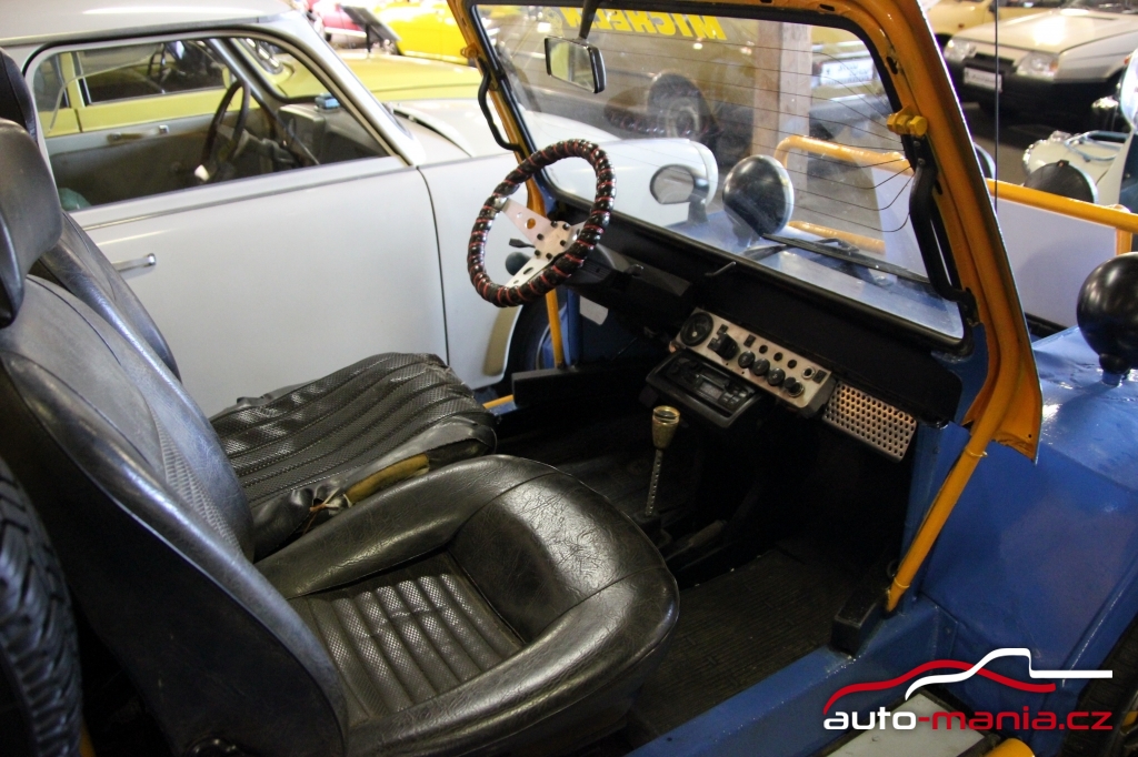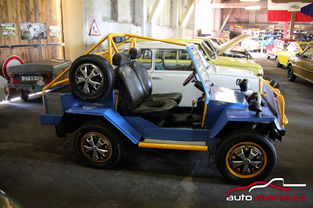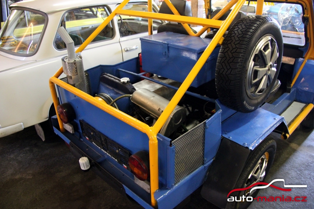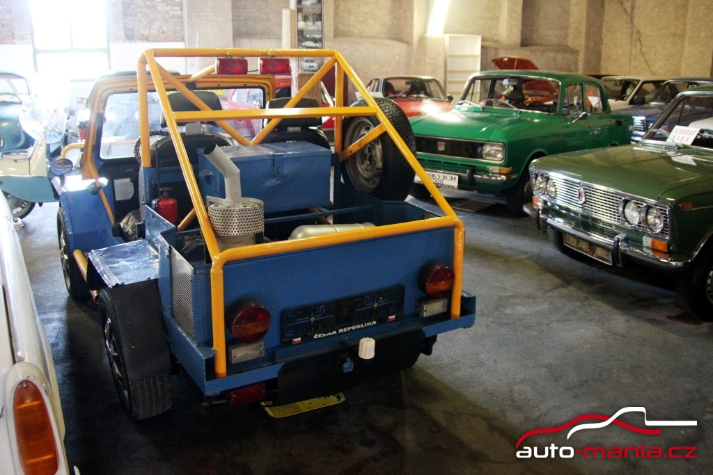 Velmi zajímavým exponátem je také bugyna domácí výroby. Tu původní majitel postavil na upraveném podvozku Škody 110R. Auto nemá RZ, takže se s ním nesmí na silnici, ale svou práci na poli nebo na zahradě zvládne perfektně.